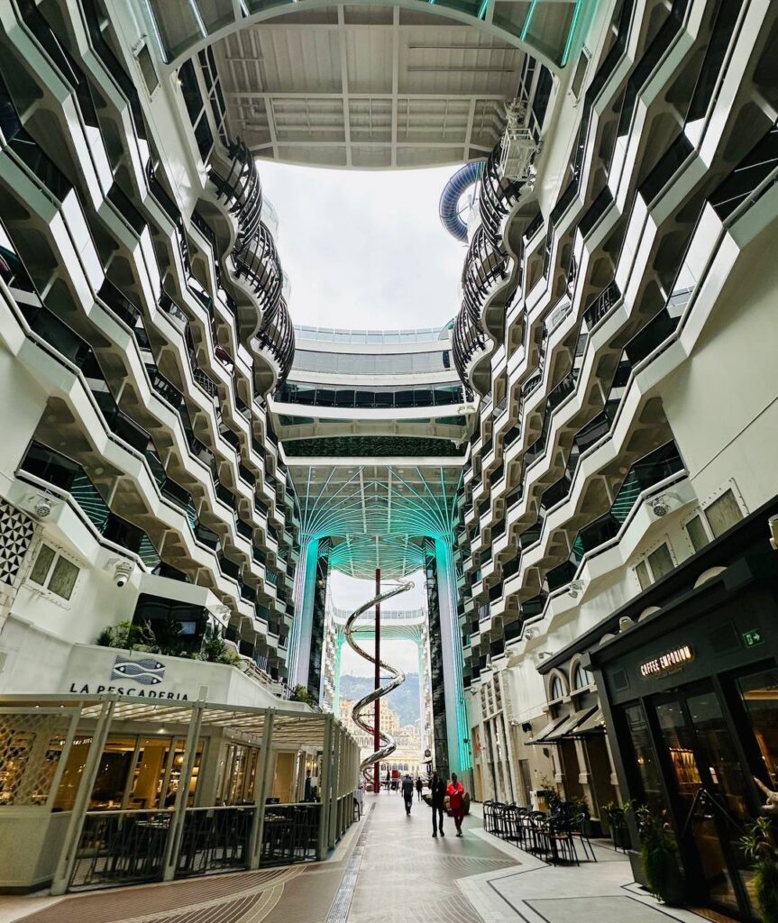 Salire a bordo di MSC World Europa è stato come entrare in una nuova era del viaggio in mare. Fin dal primo istante, il design avveniristico della nave ci ha lasciato senza parole: la sua prua verticale a 90 gradi le conferisce un profilo elegante e aerodinamico, mentre la spettacolare Europa Promenade, lunga 104 metri, è un vero capolavoro architettonico.