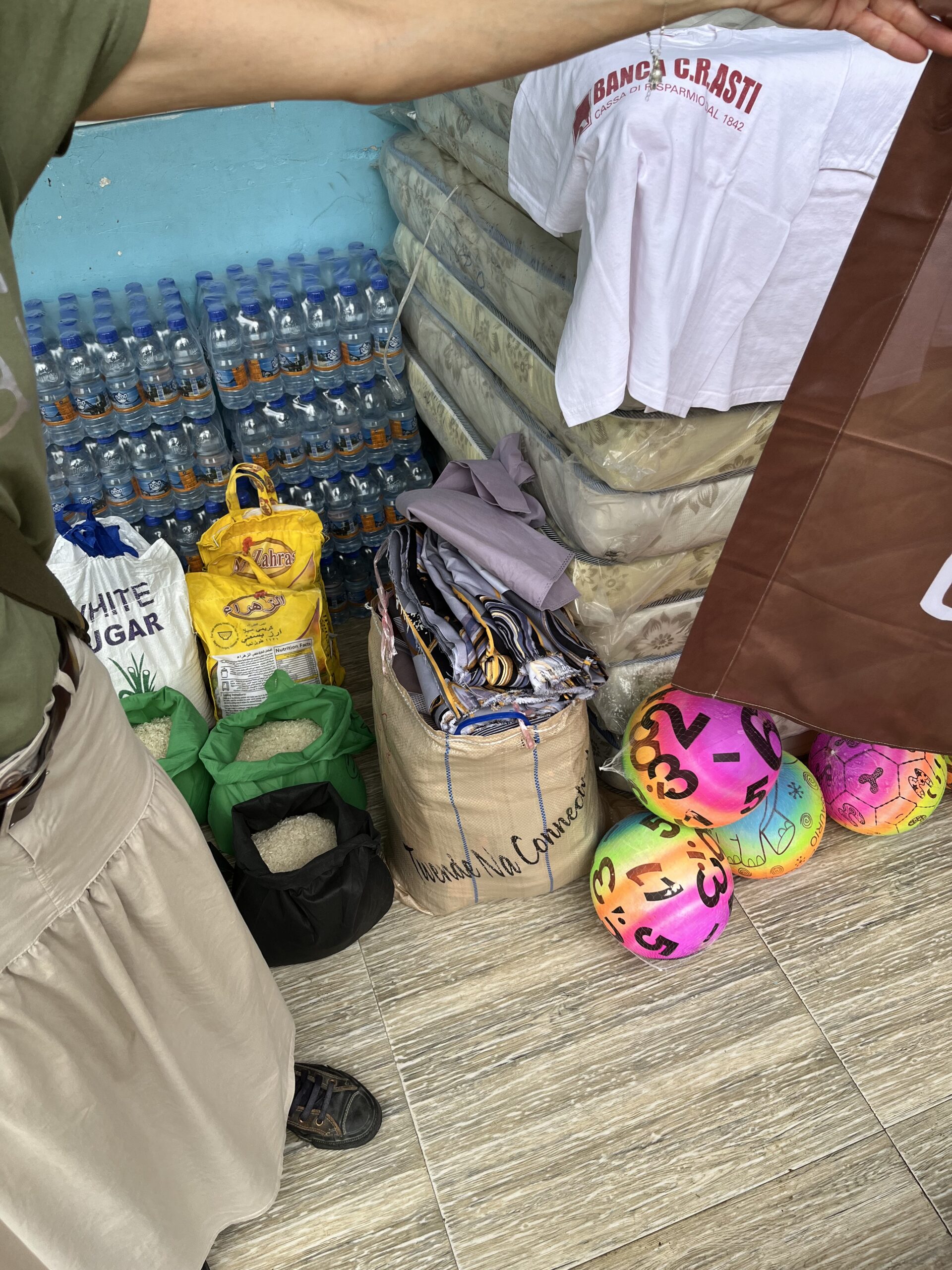 E poi com’è d’uso, anche il necessario per una piccola festa: qualche bibita, carne e qualche pallone. E’ molto importante per i ragazzi e le loro governanti, celebrare l’arrivo degli ospiti, dimostrare gratitudine e amicizia con un pranzo-rito commovente e sincero a cui abbiamo partecipato col cuore pieno di emozione.